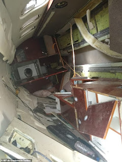 ![]() | Operating in the Eastern Pacific the USS Gabrielle Giffords intercepted a low-profile vessel (LPV) containing 2,810kg (4,806 lbs) of cocaine. The value of the cargo is over $100m. The LPV is a common design and 19 of the craft have been busted since 2017. It was built from roughly crafted fiberglass and is powered by three Yamaha Enduro 2-stroke outboard motors. A crew of 3 are crammed into a tiny cockpit at the extreme rear of the craft. Beneath the deck is a cargo hold and living space. The crew sleep on the bales of cocaine. At either side and at the front are fuel tanks. The interior is claustrophobic, yet there is no problem recruiting crew. |