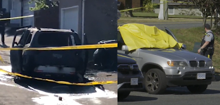 He could be seen slumped out of the door of a white Toyota SUV after being shot about 5:30 p.m.