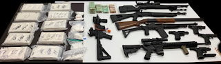 ![]() | Cops seized 12.5kg of cocaine, 12.2kg of cannabis, 640 grams of shatter, 1400 packages of cannabis edibles, fentanyl patches, 2000 methamphetamine tablets, as well as Hells Angels and Red Devils MC gear. Project Skylark investigators seized 11 firearms and 700 rounds of ammunition, $75k in cash, $30k in jewelry, multiple vehicles including three motorcycles and one residence. | ![]() |