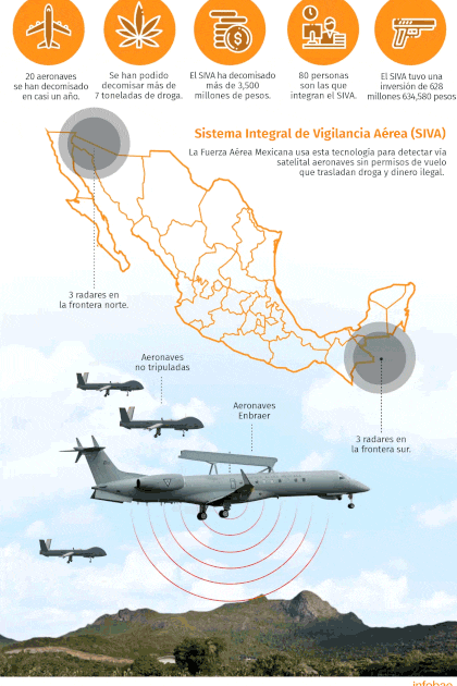 | The Mexican army's Comprehensive Air Surveillance System (SIVA) detected 80 planes carrying contraband in it's first 13 months.