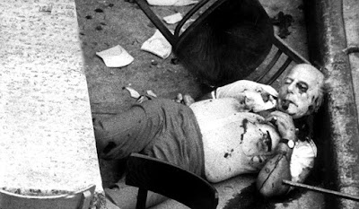 ![]() Murder Inc.’s Albert Anastasia lies on the floor after his murder by masked gunmen in New York October 25, 1957. The “Lord High Executioner” was murdered while in his barber’s chair. |