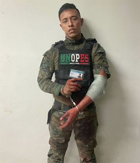 | Gunmen in Mexican special forces uniforms freed the cartel boss just miles from the U.S. border. At least four gunmen wearing bulletproof vests with the logo of the Mexican Navy special forces were filmed. (UNOPES for its Spanish acronym) | José Alfredo Hernández Campos, alias El Calamardo or Metro 27, was busted out of the Attorney General's Office in Reynosa, Tamaulipas on July 13. He is a high-ranking member of the Metros faction of the Gulf Cartel.![]() |