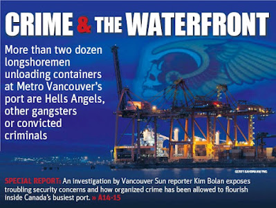 ![]() | Police told the Sun that organized crime maintains its foothold on the waterfront for strategic purposes — so drugs and other contraband can be smuggled in some of the more than 1.5 million containers that pass through the four container terminals at Port Metro Vancouver every year. Just over three per cent of the containers arriving are screened by the Canada Border Services Agency. | ![]() |