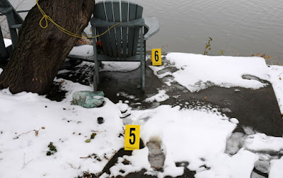 ![]() Shot 3 times, Montagna smashed through a window of the house to try to save himself. ![]() | Raynald Desjardins was nervous when detectives visited on Nov 25, 2011. It was a day after Desjardins killed Montagna. Montagna had sent a text message; "I want you to know that you are my friend." Montagna agreed that Jack Simpson, a Desjardins man, take him to the meeting. | Desjardins was not there. Five minutes later Montagna fled Simpson's house with 3 .357 gunshot wounds. Montagna was shot dead on November 24, 2011. |