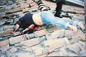 | Using radio triangulation technology provided by the US, a Colombian electronic surveillance team found him hiding in a middle-class barrio in Medellín. A firefight with Escobar and his bodyguard ensued. The two fugitives attempted to escape by running across the roofs of adjoining houses to reach a back street, but both were shot and killed. |
